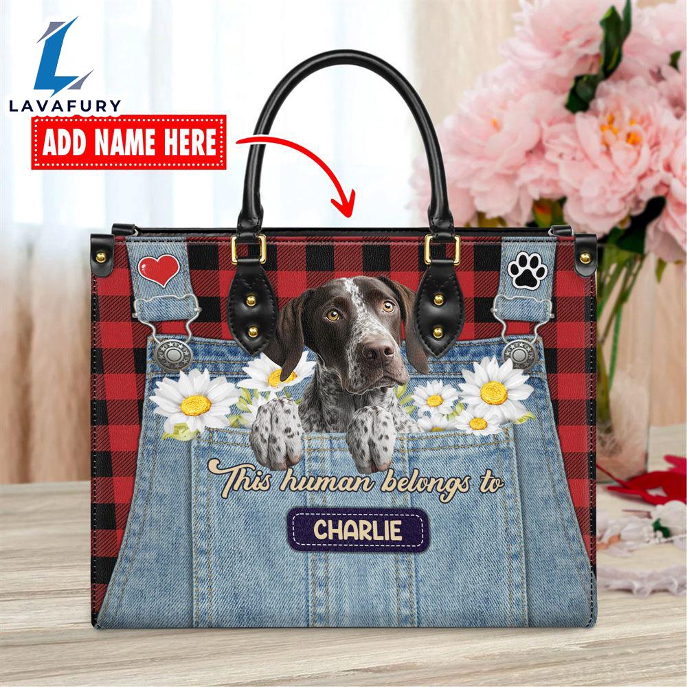 German Shorthaired Pointer Dog This Human Belongs To Leather Handbag Love Your Pet