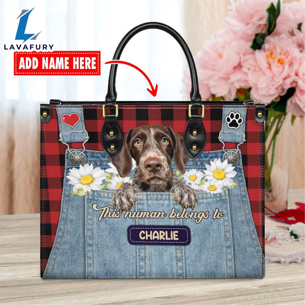 Photos Of German Wirehaired Pointer Dog This Human Belongs To Leather Handbag V016 1 Love Your Pet