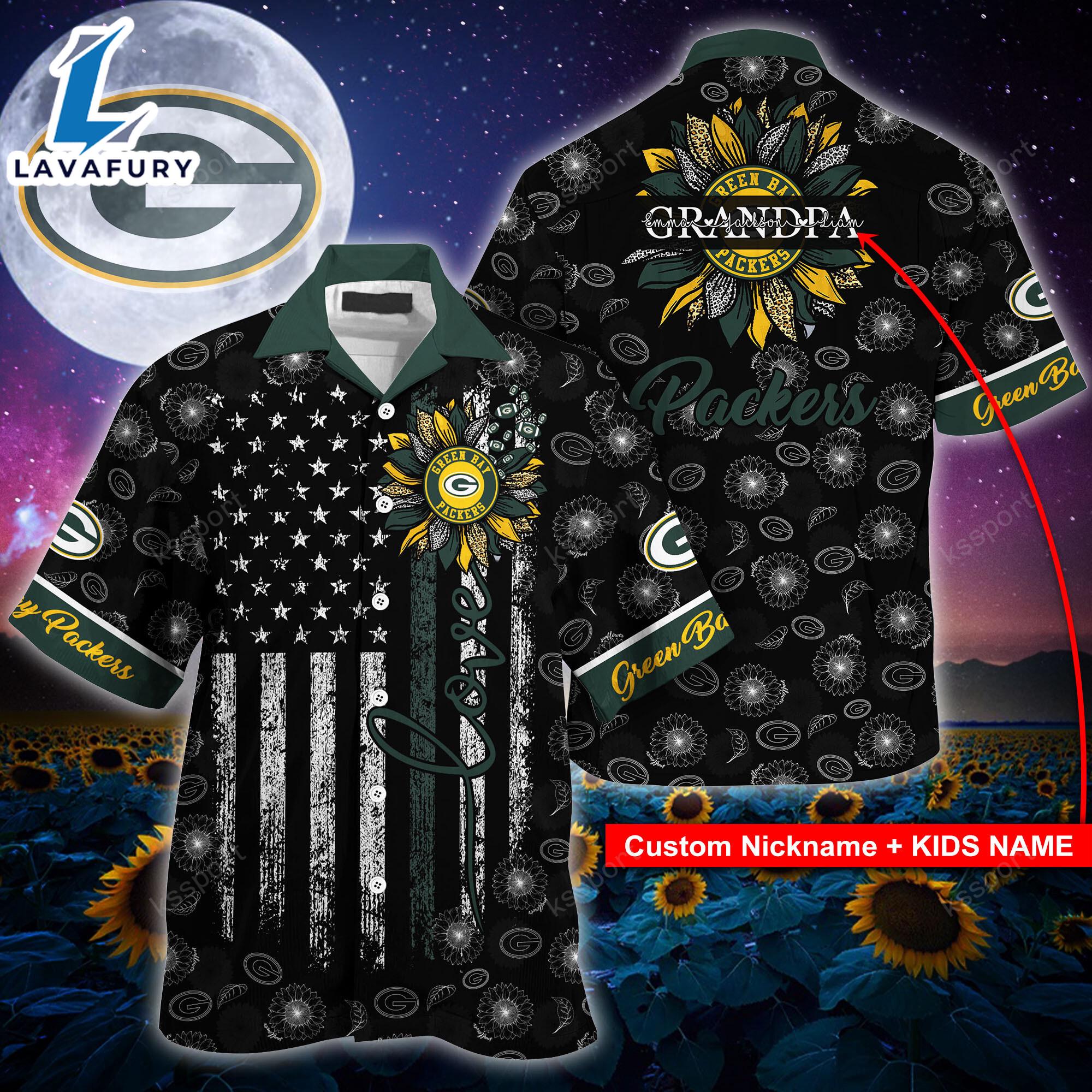 Green Bay Packers NFL-Hawaii Shirt Sunflower Custom Your Nickname,Kids Name Best Gift For Mother Day,Father Day Very Comfortable
