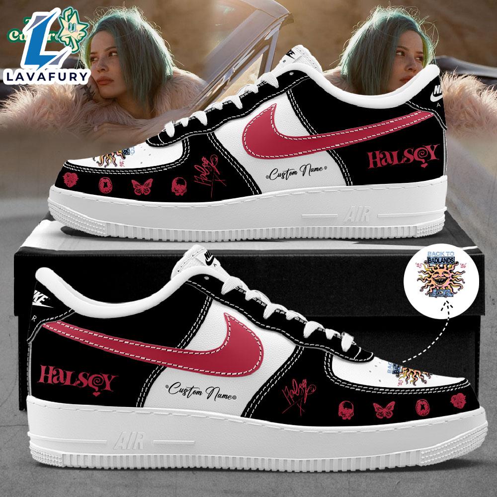 Product details: Halsey Back to Badlands Tour 2026 Signature Black Custom Air Force 1 Sneakers Shoes For Man And Women