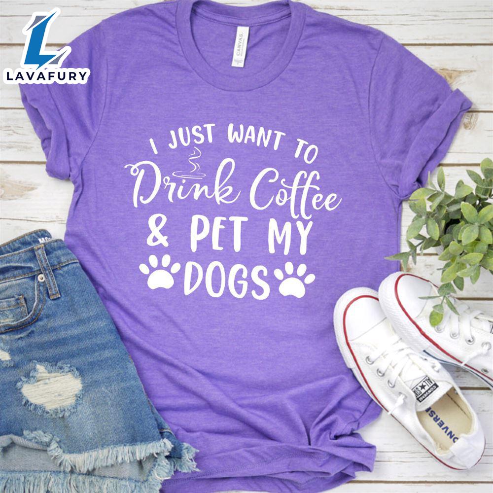 I Just Want To Drink Coffee And Pet My Dogs T-Shirt Gift For Mom