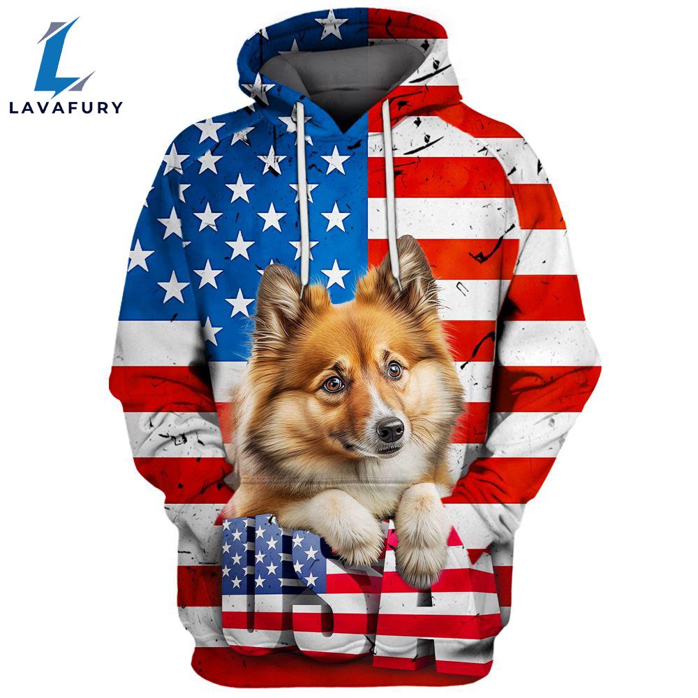 Icelandic Sheepdog 3D Face Graphic Premium America Flag Hoodie For Lover Dogs