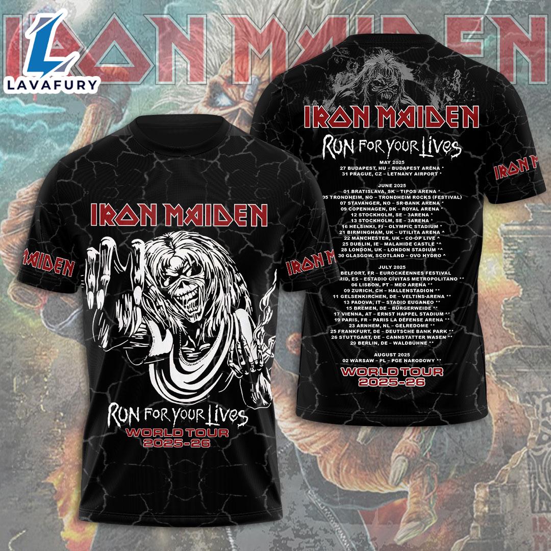 Iron Maiden Run For Your Lives Tour 2025-26 – Central T-Shirts Gift Summer For Man And Women The 3D shirt features an innovative design that combines cutting-edge technology with style. Its three-dimensional patterns create a dynamic and eye-catching look, making it stand out in any wardrobe. Made from high-quality, flexible fabric, this shirt ensures comfort and durability while allowing for a visually striking effect that plays with light and shadow.