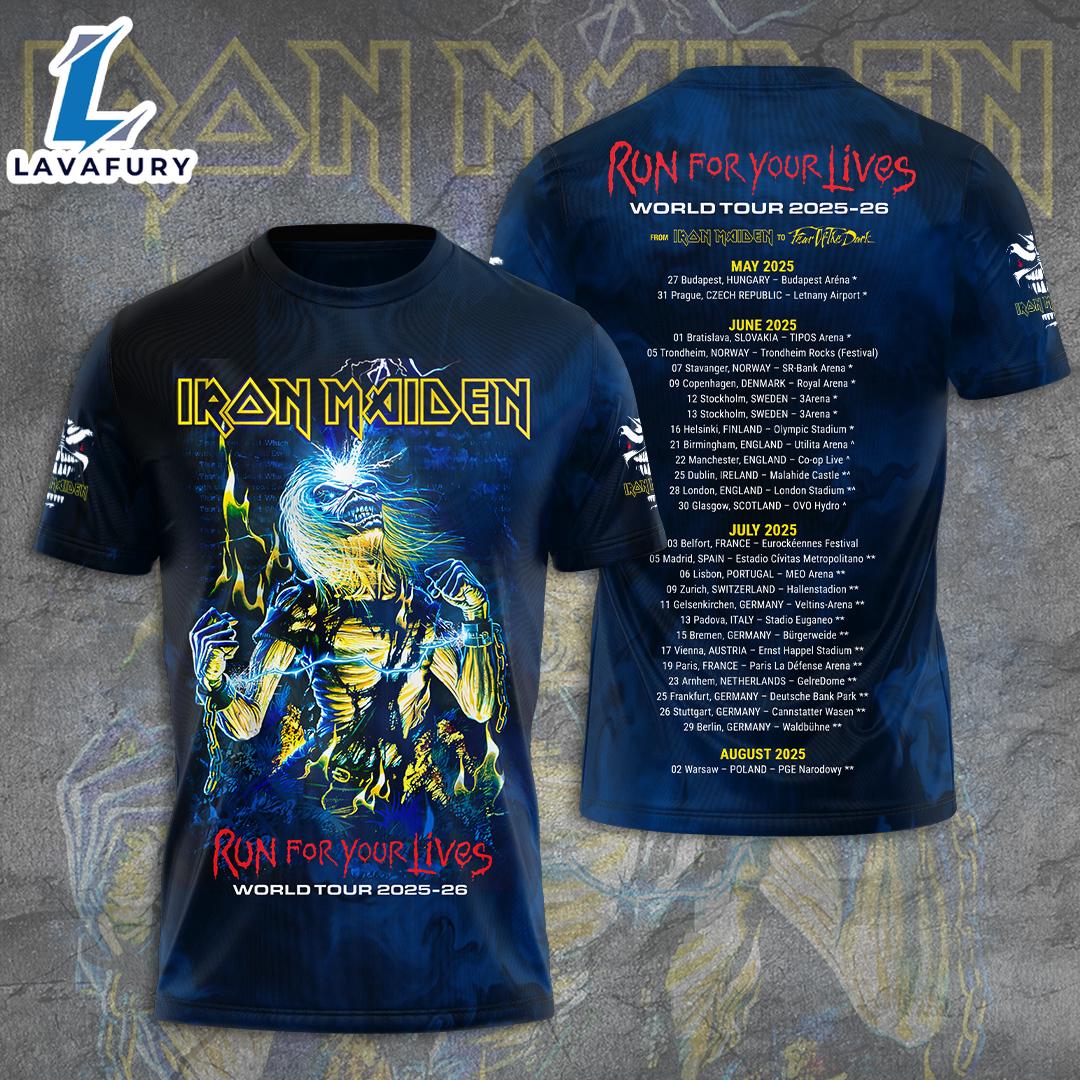 Product details: Iron Maiden Run For Your Lives Tour 2025-26 T-shirt 3D Gift Summer For Man And Women