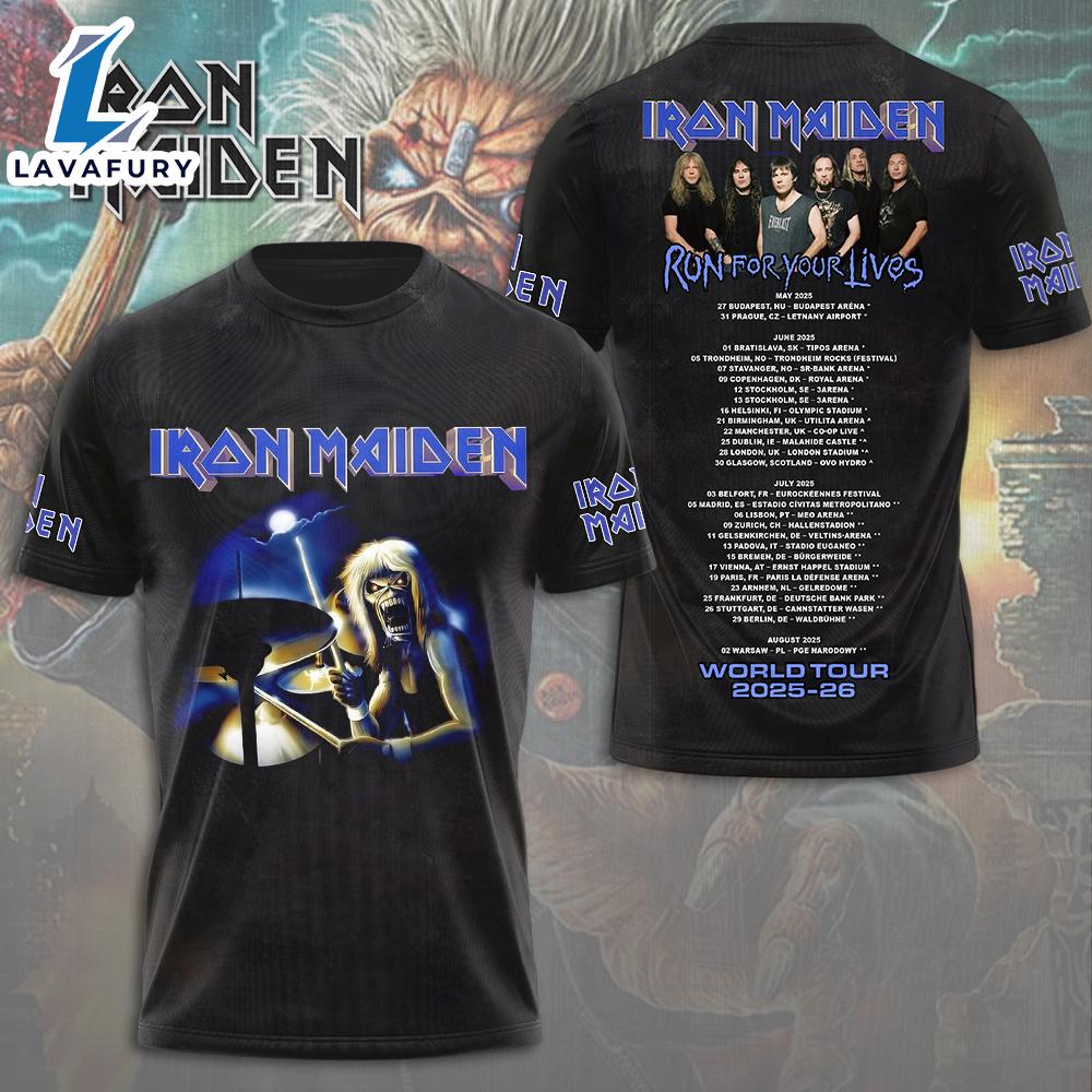 Iron Maiden Run For Your Lives World Tour 2025-2026 Black T-Shirt Gift Summer For Man And Women The 3D shirt features an innovative design that combines cutting-edge technology with style. Its three-dimensional patterns create a dynamic and eye-catching look, making it stand out in any wardrobe. Made from high-quality, flexible fabric, this shirt ensures comfort and durability while allowing for a visually striking effect that plays with light and shadow.