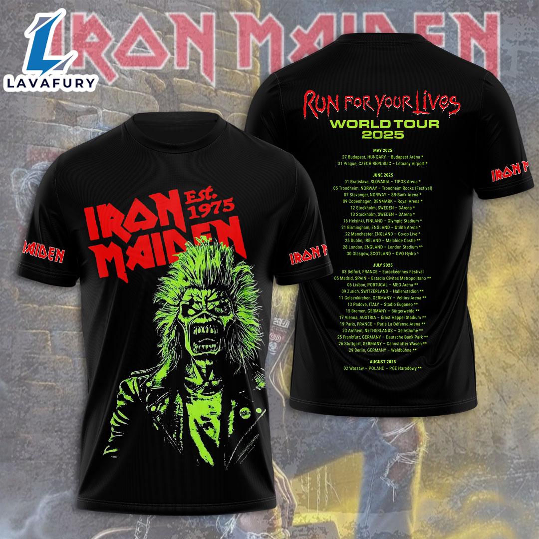 Photos Of Iron Maiden Run For Your Lives World Tour 2025-2026 From Iron Maiden To Fear Of The Dark Merchandise T-Shirt 3D Gift Summer For Man And Women