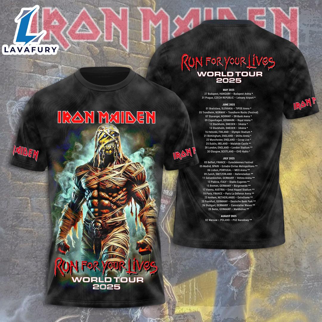 Iron Maiden Run For Your Lives World Tour 2025-26 For Iron Maiden FC Shirt Gift Summer For Man And Women The 3D shirt features an innovative design that combines cutting-edge technology with style. Its three-dimensional patterns create a dynamic and eye-catching look, making it stand out in any wardrobe. Made from high-quality, flexible fabric, this shirt ensures comfort and durability while allowing for a visually striking effect that plays with light and shadow.