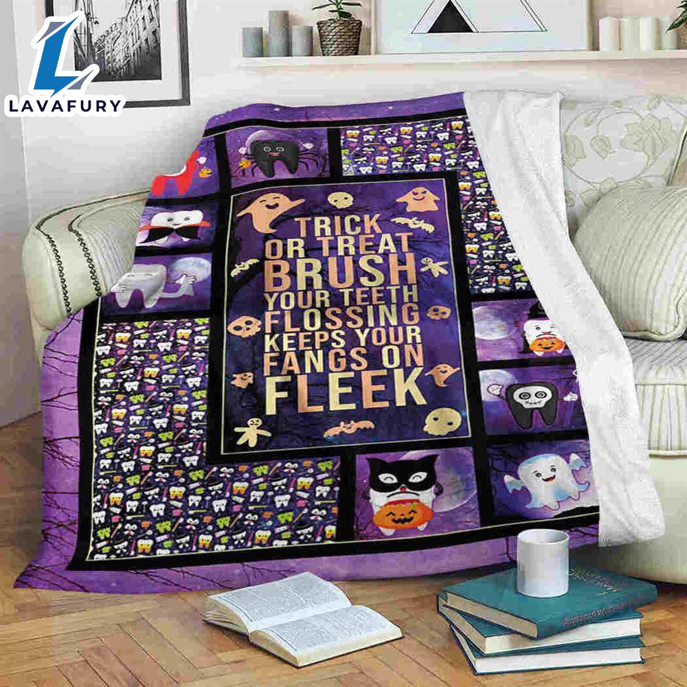 Keep Your Fangs On Fleek Dentist Halloween Sofa Fleece Throw Blanket Halloween Gifts Gift Xmas