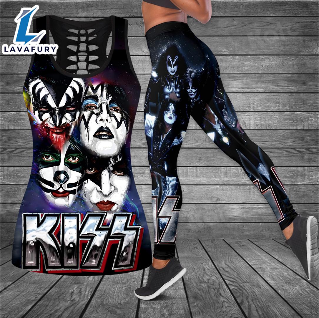 Kiss Band Hollow Tank Top Leggings Style ColorThis stylish set is versatile and can be worn for both active and casual occasions. The racerback tank top allows for ease of movement and a flattering fit, while the leggings are made from high-quality fabric that is breathable, stretchy, and comfortable for all-day wear.