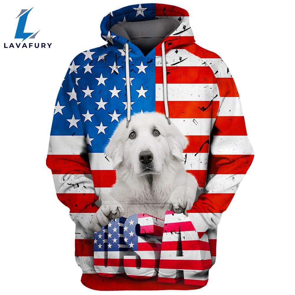 Kuvasz Dog 3D Face Graphic Premium America Flag Hoodie For Lover Dogs