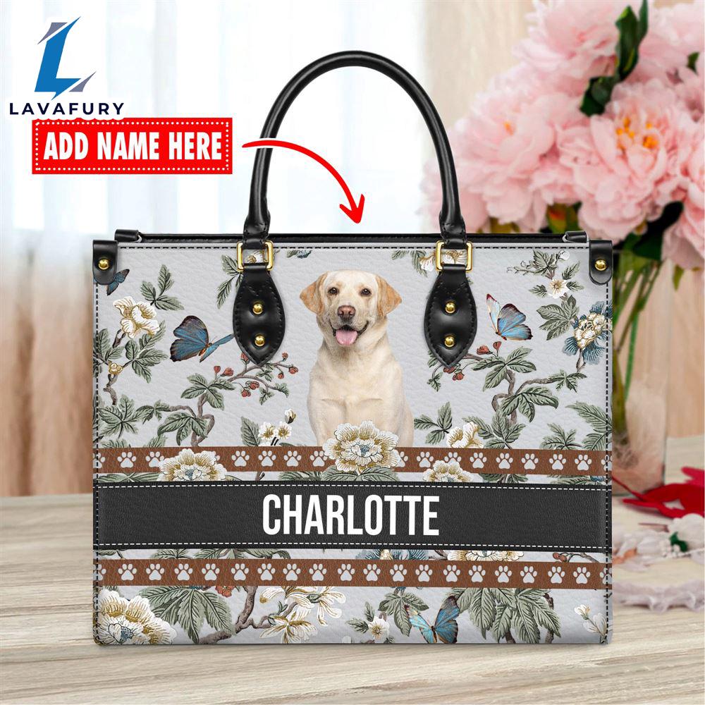 Photos Of Labrador Retriever Dog Bior Leather Handbag With Flowers And Butterfly Love Your Pet
