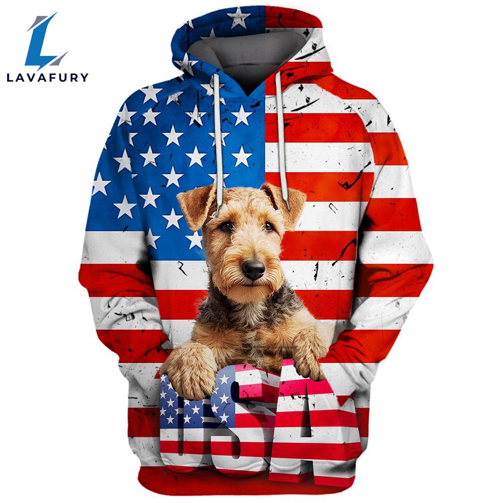 Product details: Lakeland Terrier Dog 3D Face Graphic Premium America Flag Hoodie For Lover Dogs