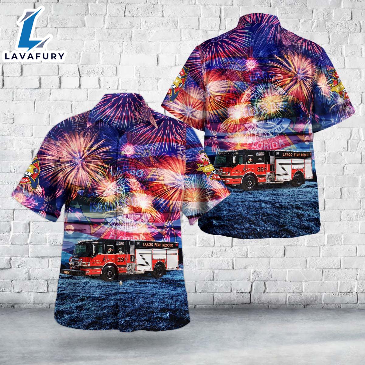 Product details: Largo, Florida, Largo Fire Rescue, 4th Of July Hawaiian Shirt 4TH Of July