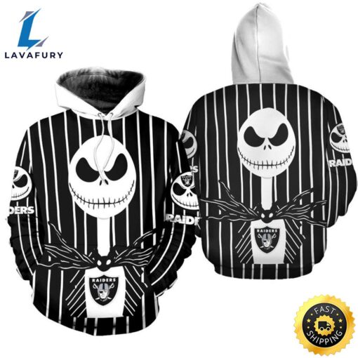 Las Vegas Raiders Halloween With Jack Skellington Super Bowl 3d Pullover Hoodie