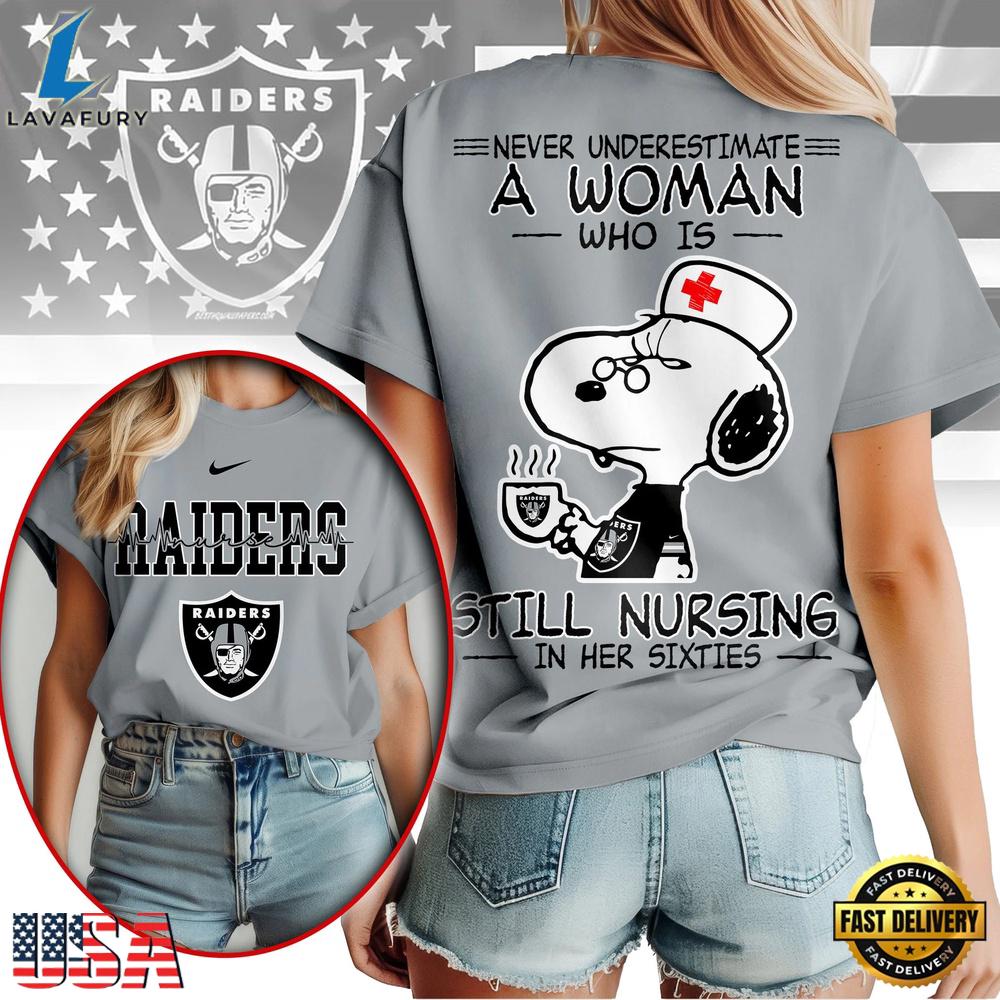 Product details: Las Vegas Raiders NFL Snoopy Never Underestimate A Nurse Women Shirt