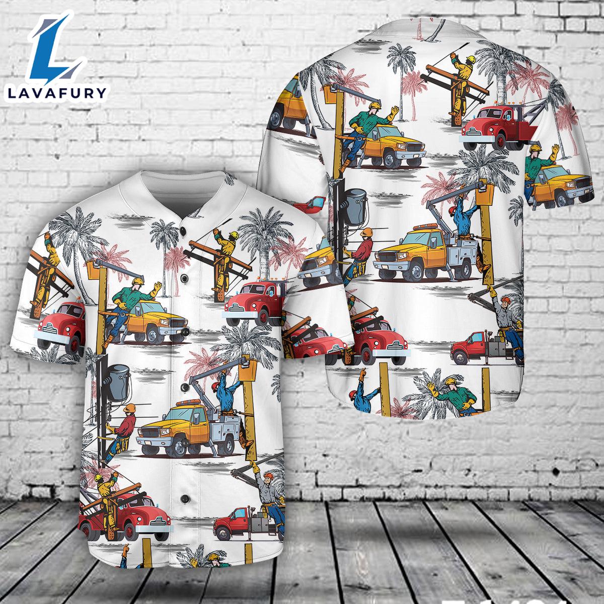Lineman With Bucket Truck Baseball Jersey 4TH Of July
