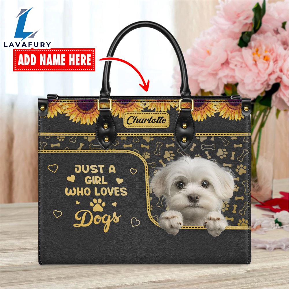 Maltese Dog Just A Girl Who Loves Dogs Leather Handbag Love Your Pet