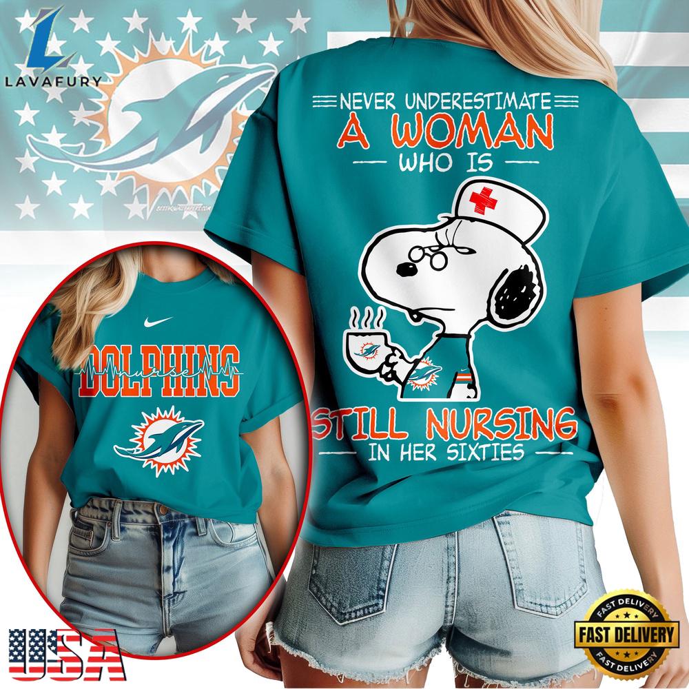 Miami Dolphins NFL Snoopy Never Underestimate A Nurse Women Shirt