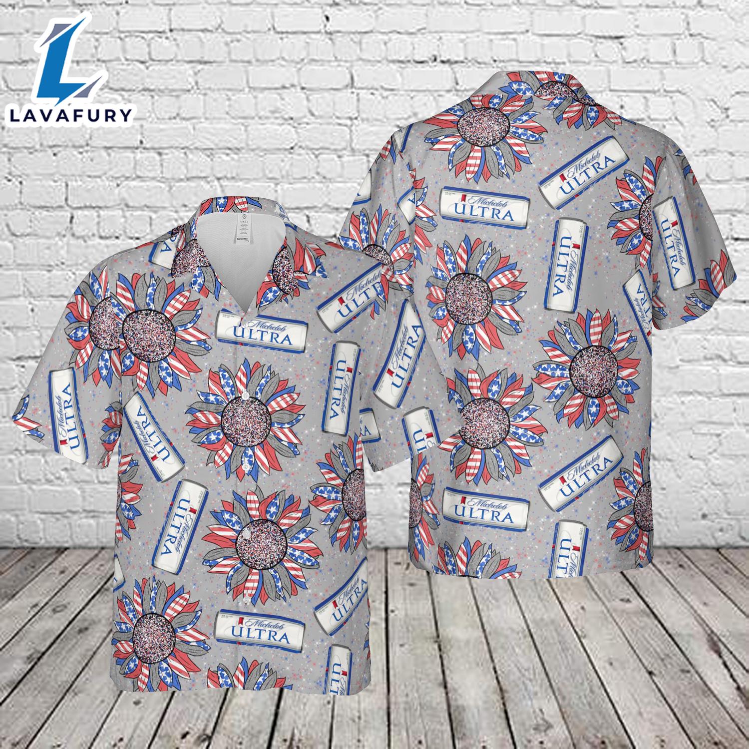 Michelob Ultra, Sunflower, Red White Blue, 4th of July, Patriotic, Beer Hawaiian Shirt 4TH Of July
