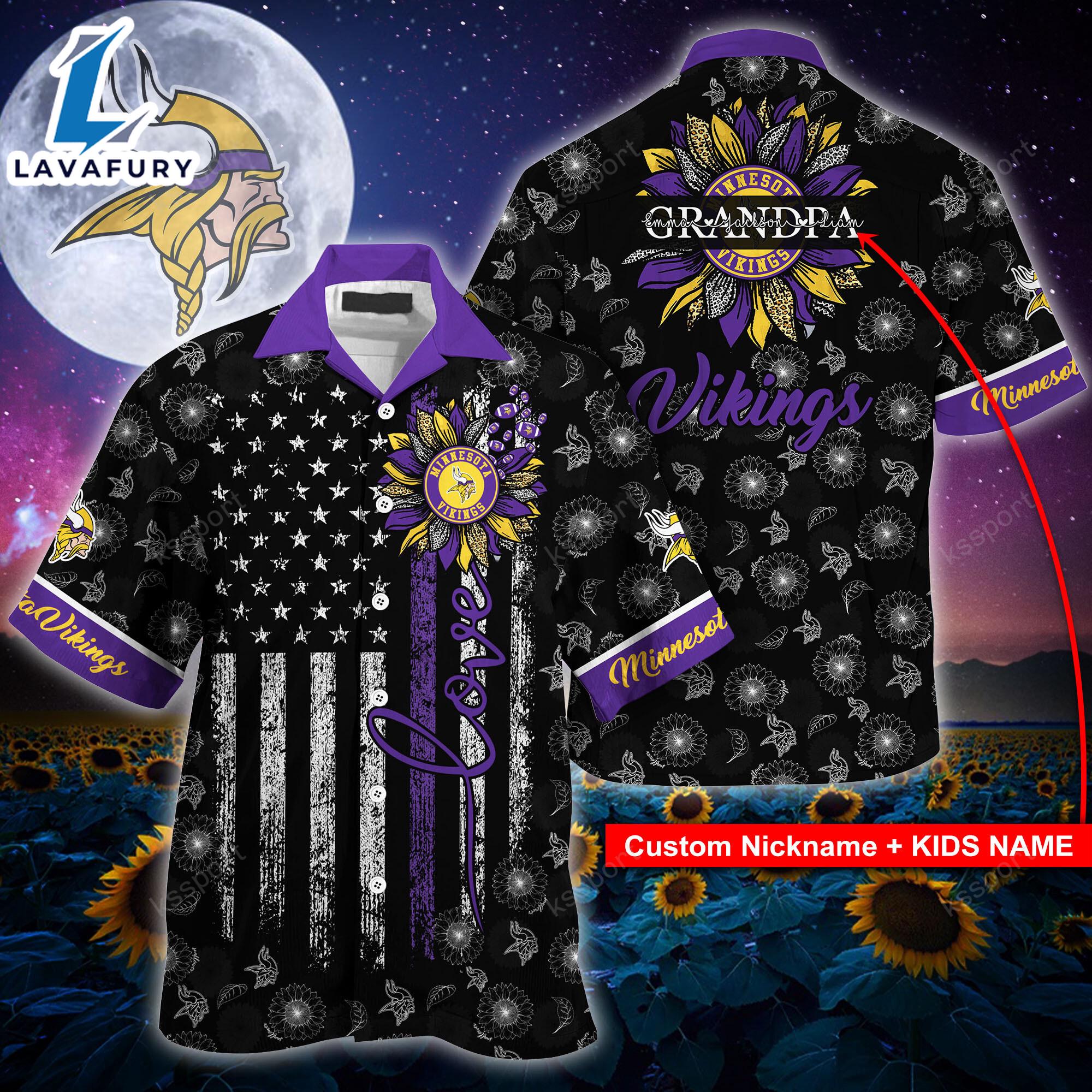 Minnesota Vikings NFL-Hawaii Shirt Sunflower Custom Your Nickname,Kids Name Best Gift For Mother Day,Father Day Very Comfortable
