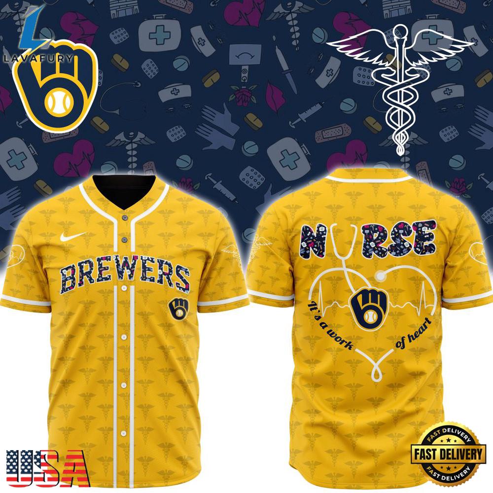 Product details: MLB Milwaukee Brewers Happy International Nurses Day 2026 Baseball Jersey Shirt