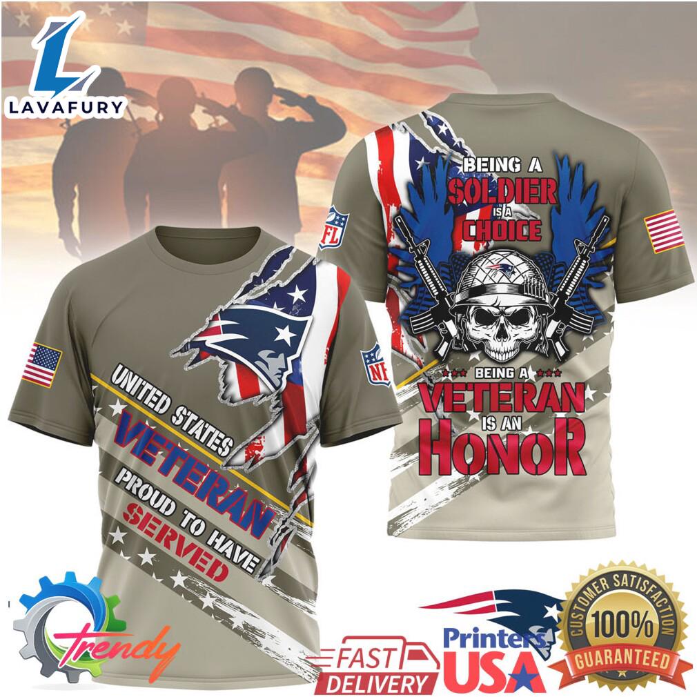 New England Patriots Official NFL Proud U.S. Veteran 3D Shirt For Man And Women