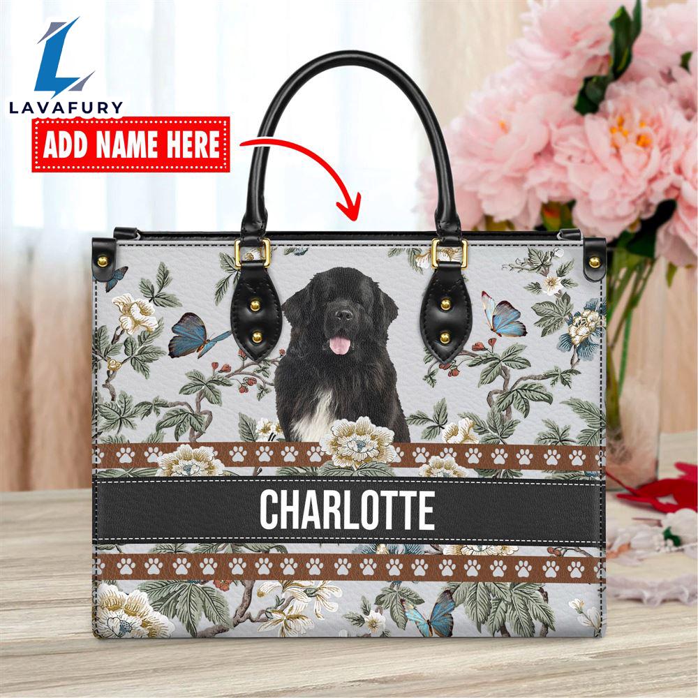 Photos Of Newfoundland Dog Bior Leather Handbag With Flowers And Butterfly Love Your Pet