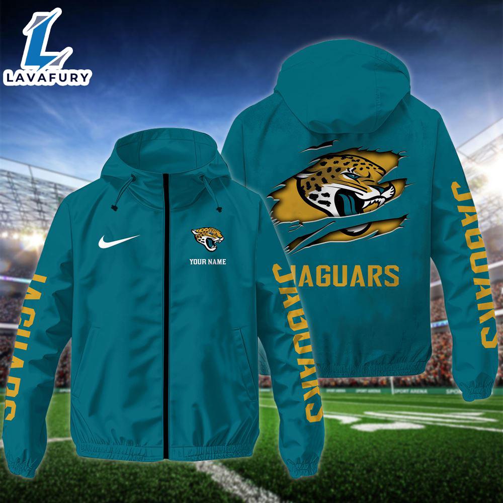 NFL Jacksonville Jaguars Custom Name Windbreaker Jacket For Fans For Fans Windbreaker Jacket is a lightweight, breathable outerwear piece designed to protect you from wind and light rain. Made from water-resistant materials, it features a sleek design with a zip-up front, elastic cuffs, and often a hood for added coverage. Perfect for outdoor activities, jogging, or casual everyday wear, the windbreaker combines function and fashion — keeping you comfortable while adding a sporty, modern edge to your look.