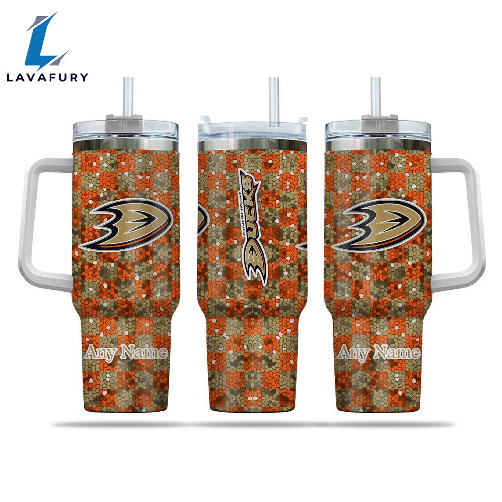 NHL Anaheim Ducks Stained Glass Effect Custom Stanley Quencher 40oz Stainless Steel Tumbler With Handle Gift Summer