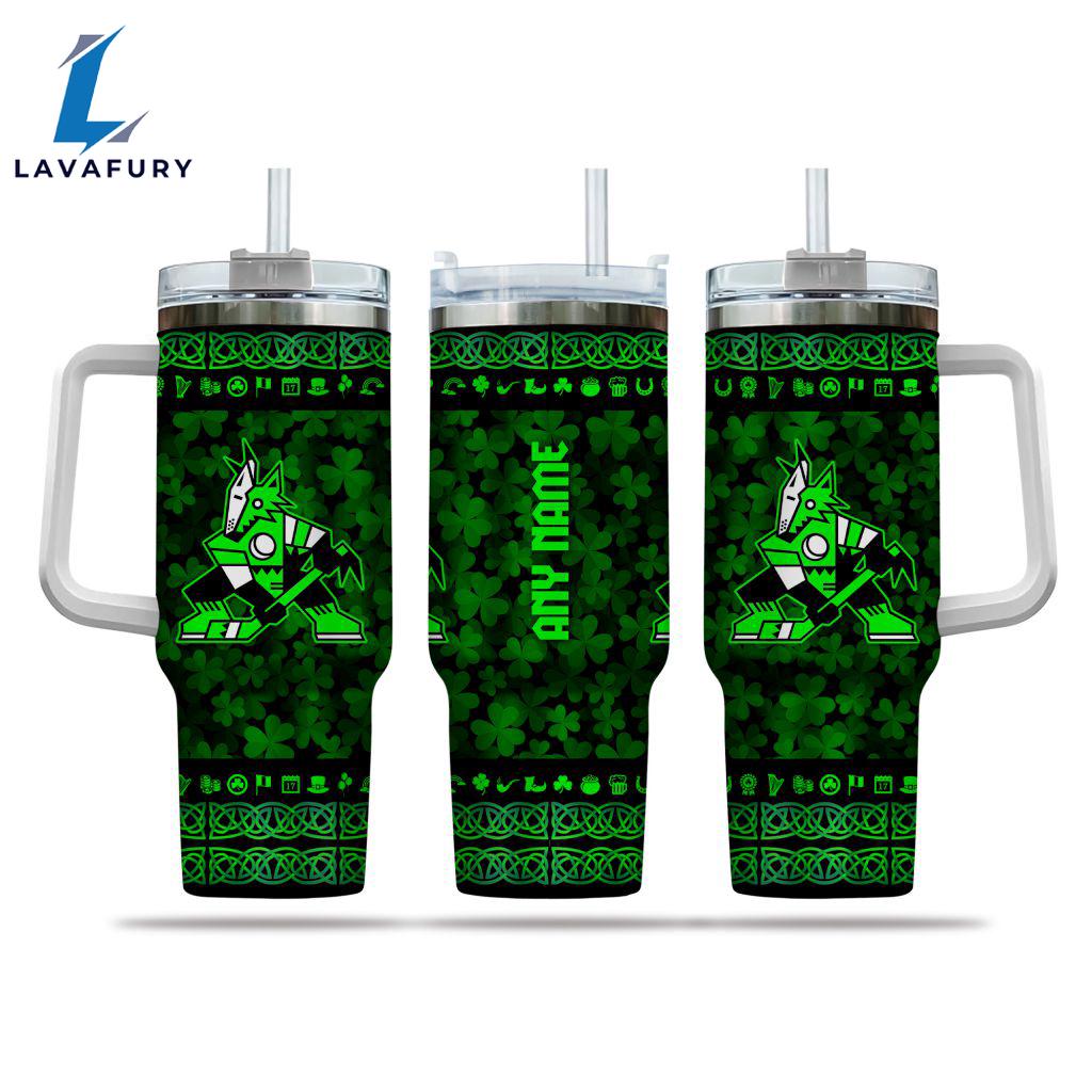 NHL Arizona Coyotes Happy St. Patrick’s Day Custom Stanley Quencher 40oz Stainless Steel Tumbler With Handle Gift Summer