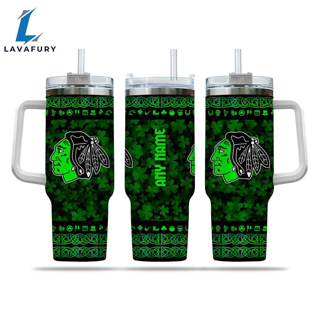 NHL Chicago Blackhawks Happy St. Patrick’s Day Custom Stanley Quencher 40oz Stainless Steel Tumbler With Handle Gift Summer