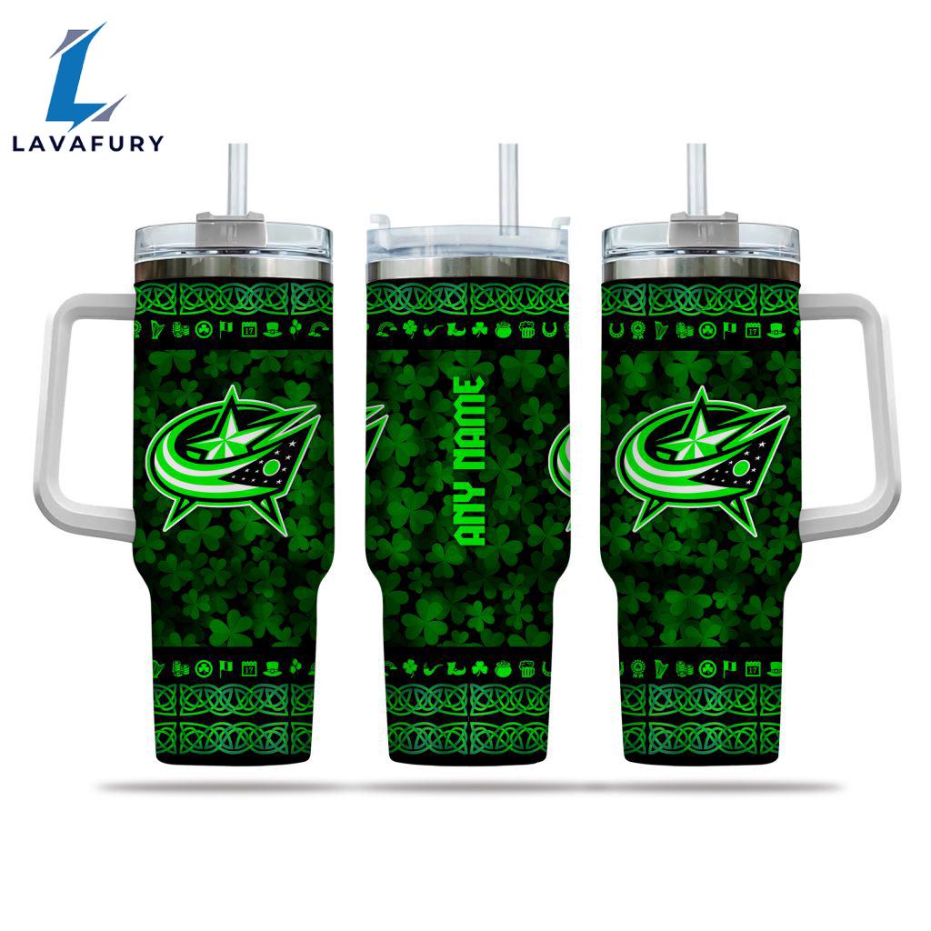 Photos Of NHL Columbus Blue Jackets Happy St. Patrick’s Day Custom Stanley Quencher 40oz Stainless Steel Tumbler With Handle Gift Summer