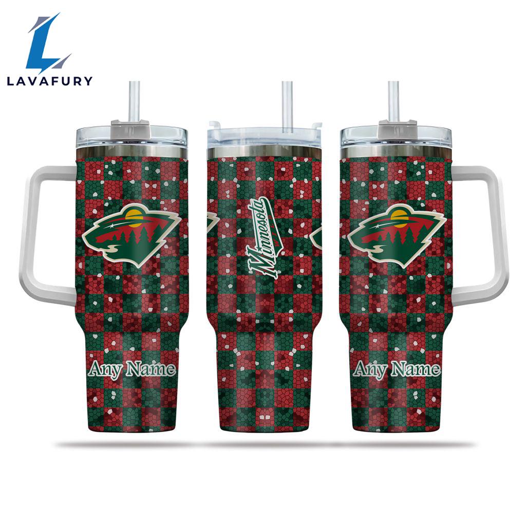 Photos Of NHL Minnesota Wild Stained Glass Effect Custom Stanley Quencher 40oz Stainless Steel Tumbler With Handle Gift Summer
