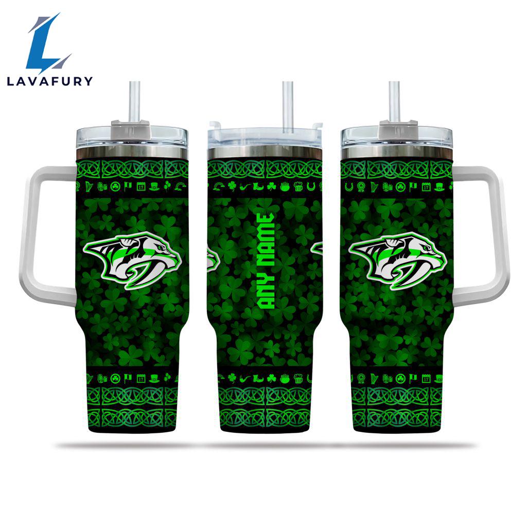 NHL Nashville Predators Happy St. Patrick’s Day Custom Stanley Quencher 40oz Stainless Steel Tumbler With Handle Gift Summer