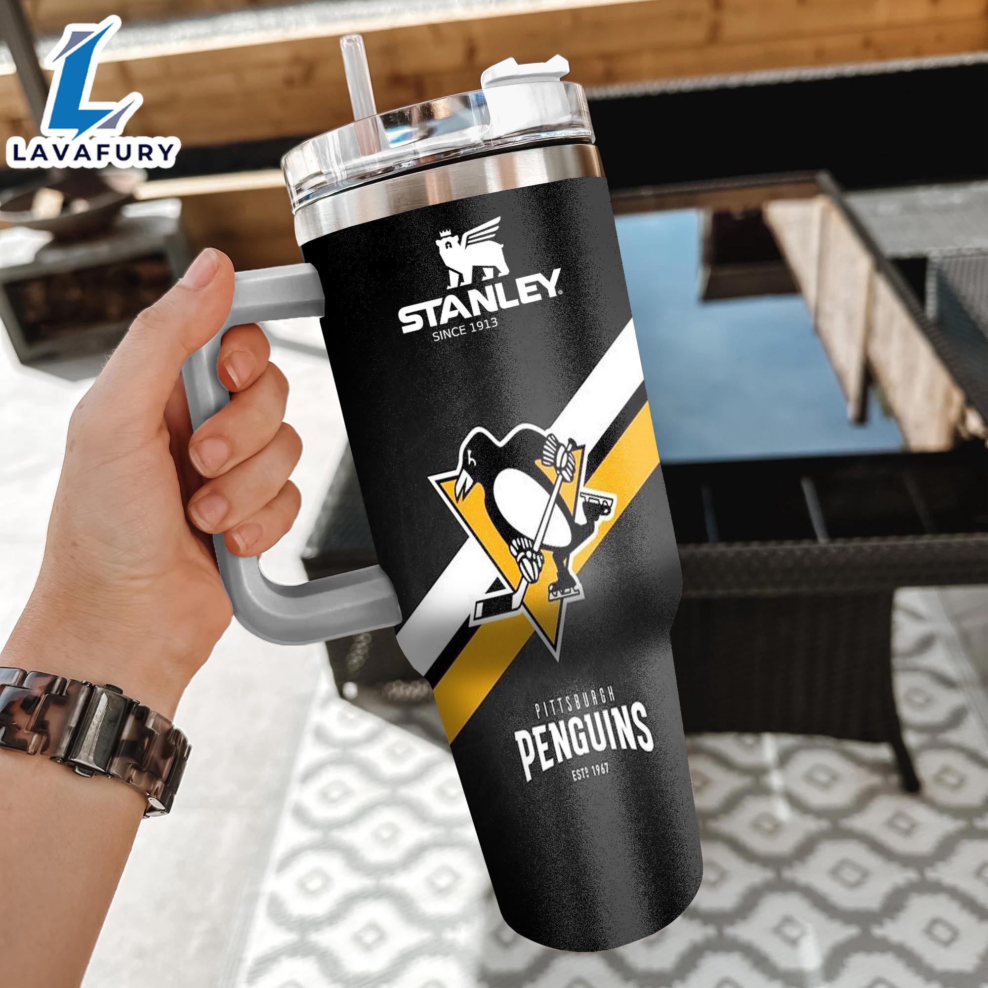 Photos Of NHL Pittsburgh Penguins Custom Stanley Quencher 40oz Stainless Steel Tumbler With Handle Gift Summer