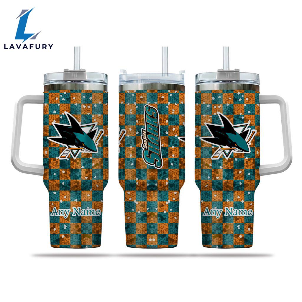 Photos Of NHL San Jose Sharks Stained Glass Effect Custom Stanley Quencher 40oz Stainless Steel Tumbler With Handle Gift Summer