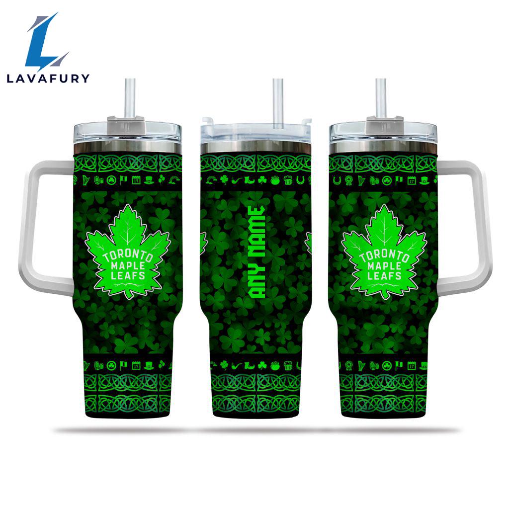 Photos Of NHL Toronto Maple Leafs Happy St. Patrick’s Day Custom Stanley Quencher 40oz Stainless Steel Tumbler With Handle Gift Summer