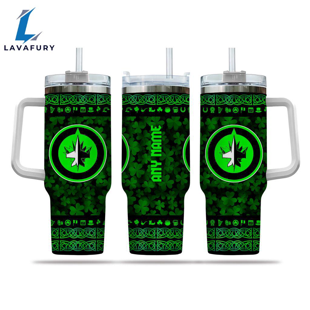 Photos Of NHL Winnipeg Jets Happy St. Patrick’s Day Custom Stanley Quencher 40oz Stainless Steel Tumbler With Handle Gift Summer