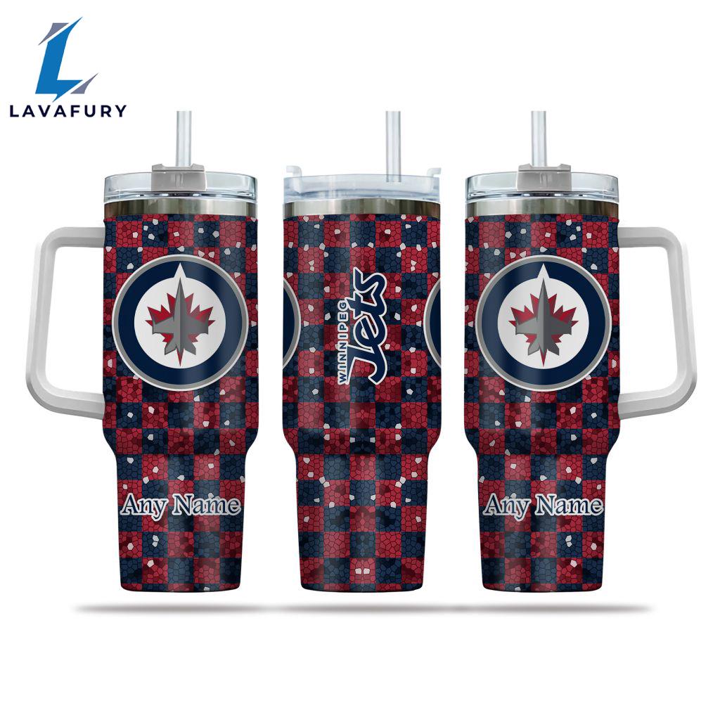 NHL Winnipeg Jets Stained Glass Effect Custom Stanley Quencher 40oz Stainless Steel Tumbler With Handle Gift Summer
