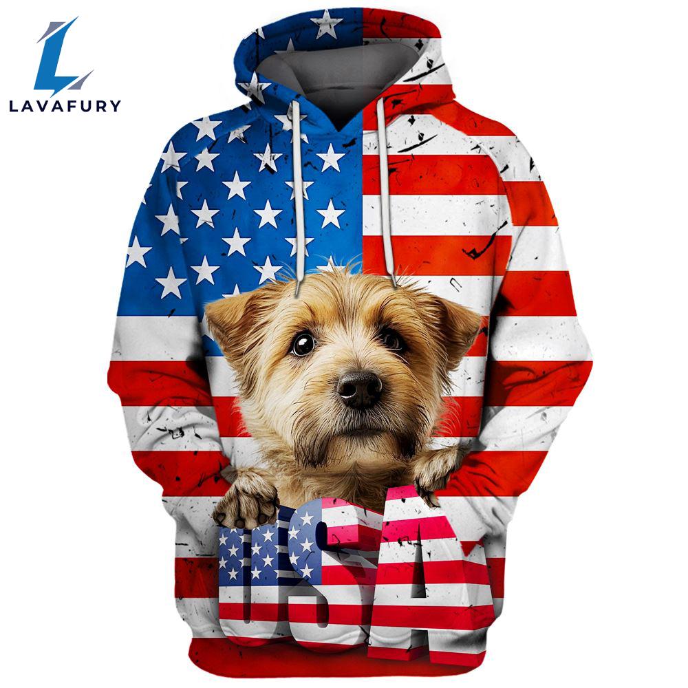 Product details: Norfolk Terrier Dog 3D Face Graphic Premium America Flag Hoodie For Lover Dogs