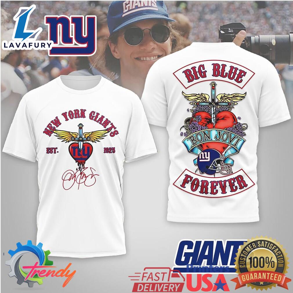 Official New York Giants Heart and Dagger Bon Jovi T Shirt For Man And Women The 3D shirt features an innovative design that combines cutting-edge technology with style. Its three-dimensional patterns create a dynamic and eye-catching look, making it stand out in any wardrobe. Made from high-quality, flexible fabric, this shirt ensures comfort and durability while allowing for a visually striking effect that plays with light and shadow.