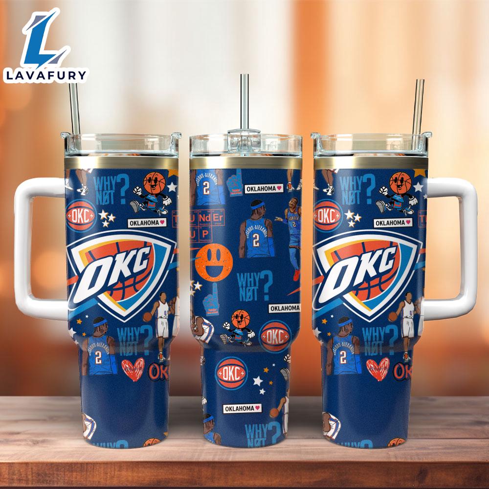 Oklahoma City Thunder Basketball NBA Sport Custom Stanley Quencher 40oz Stainless Steel Tumbler With Handle Gift Summer The Stanley Tumbler 40oz is a versatile and durable companion designed to keep your beverages at the perfect temperature, whether on the go or enjoying a day outdoors. Crafted from high-grade stainless steel, this tumbler boasts exceptional insulation capabilities, keeping your drinks hot or cold for hours. Its generous 40-ounce capacity is perfect for long trips or sharing with friends. The design features a spill-resistant lid and a comfortable handle, making it easy to carry and use. With its rugged construction and sleek appearance, the Stanley Tumbler 40oz is the ideal choice for those who demand both functionality and style in their drinkware.