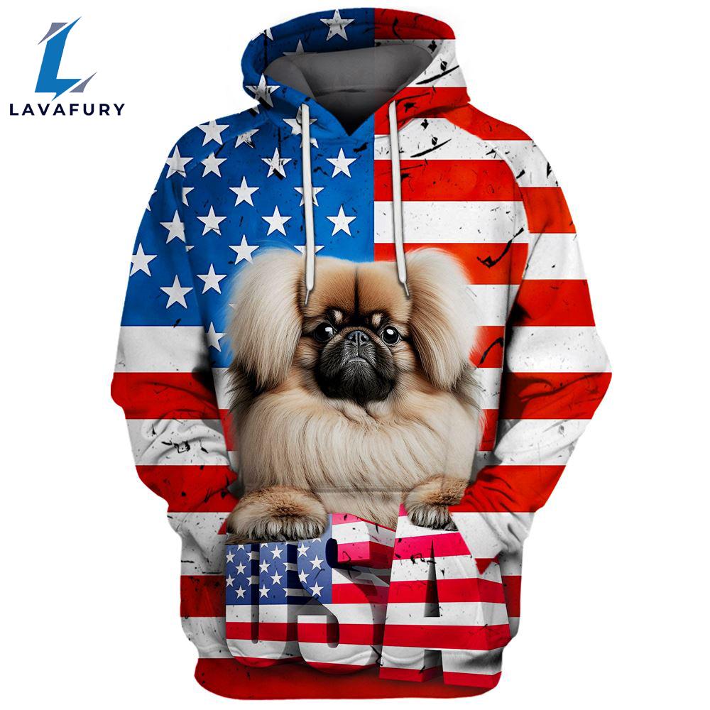 Product details: Pekingese Dog 3D Face Graphic Premium America Flag Hoodie For Lover Dogs