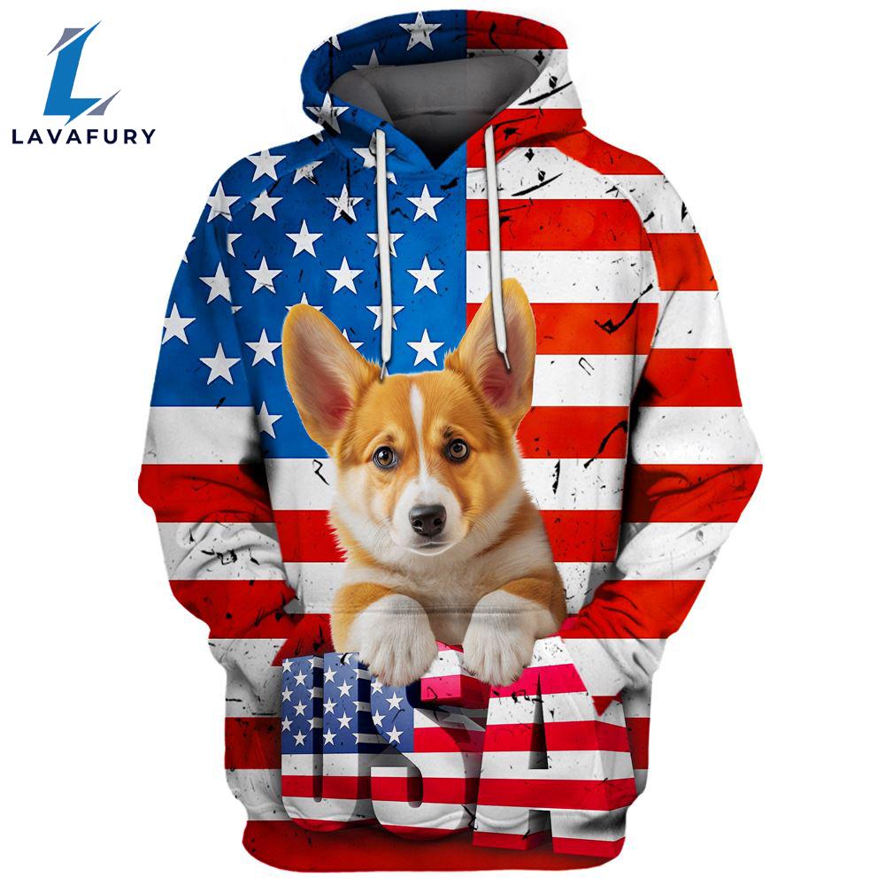 Product details: Pembroke Welsh Corgi Dog 3 3D Face Graphic Premium America Flag Hoodie For Lover Dogs