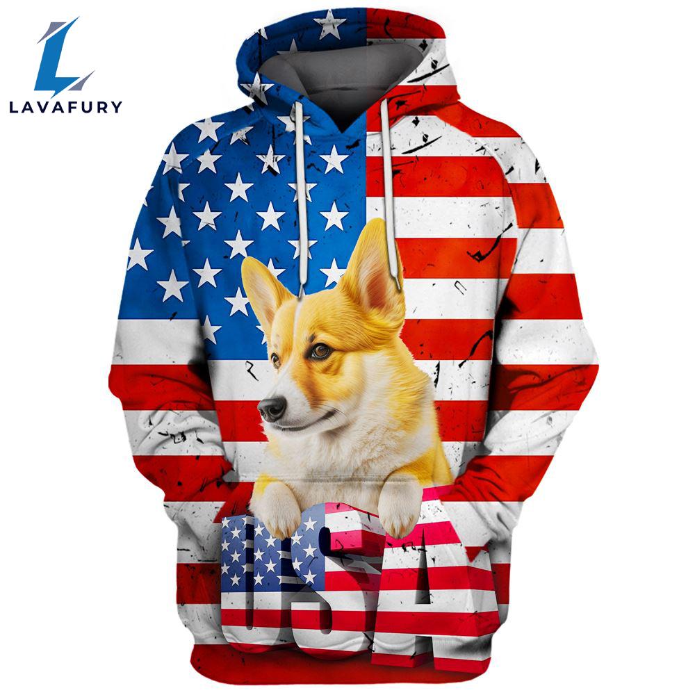 Product details: Pembroke Welsh Corgi Dog 4 3D Face Graphic Premium America Flag Hoodie For Lover Dogs