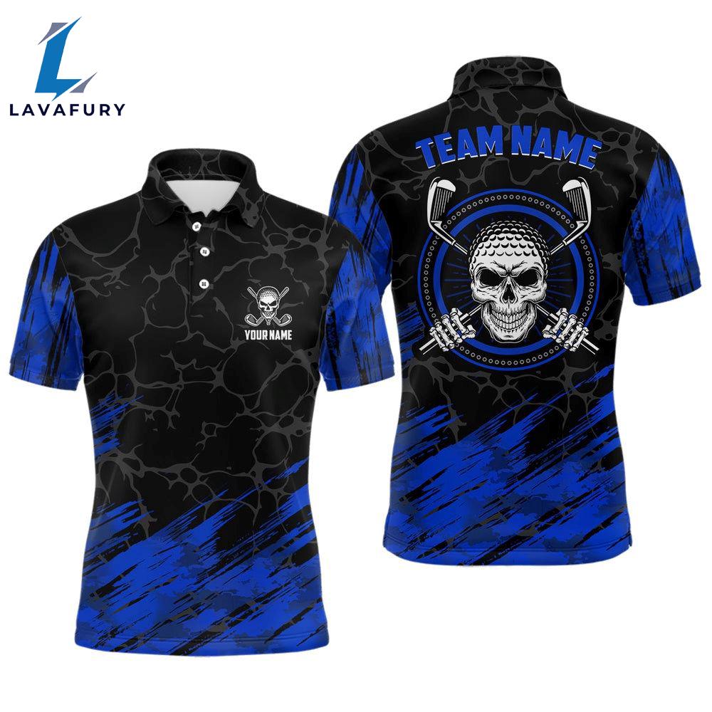 Personalized D All Over Print Skull Mens Golf Polo Shirt Navy Black Gift Summer