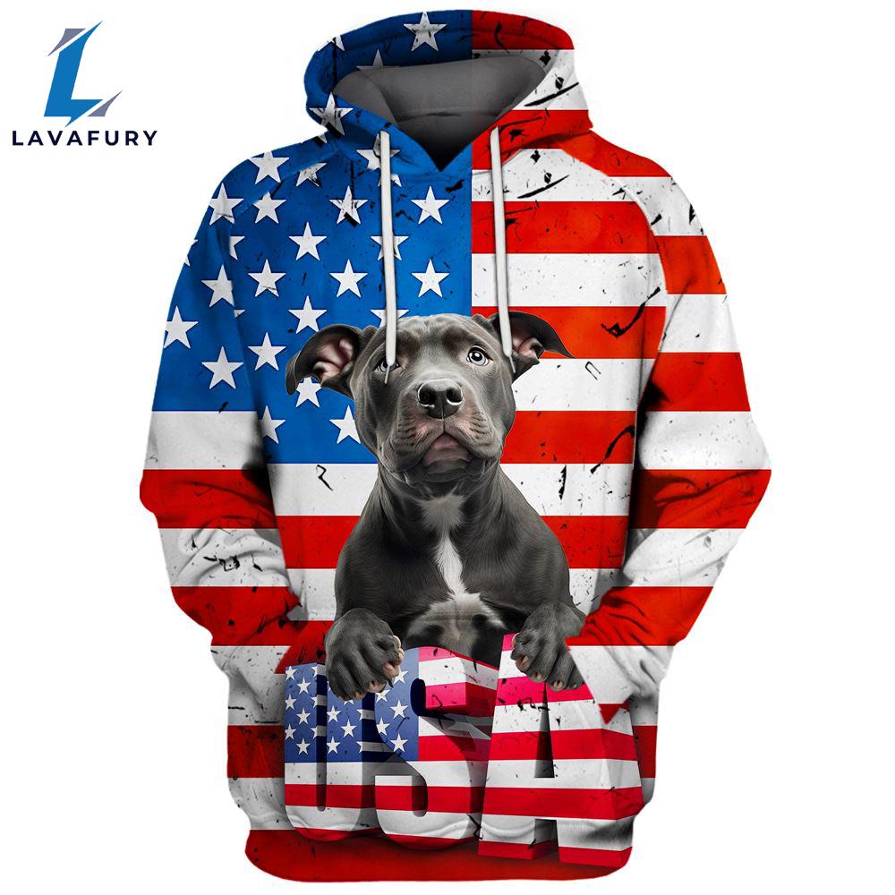 Product details: Pitbull Dog 1 3D Face Graphic Premium America Flag Hoodie For Lover Dogs