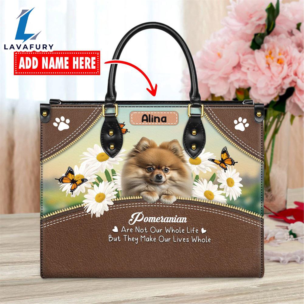 Pomeranian Dog Are Not Our Whole Life But They Make Our Lives Whole Leather Handbag Love Your Pet