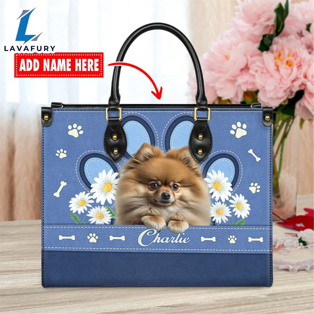 Pomeranian Dog Lover Leather Bag With Daisy Flowers Love Your Pet