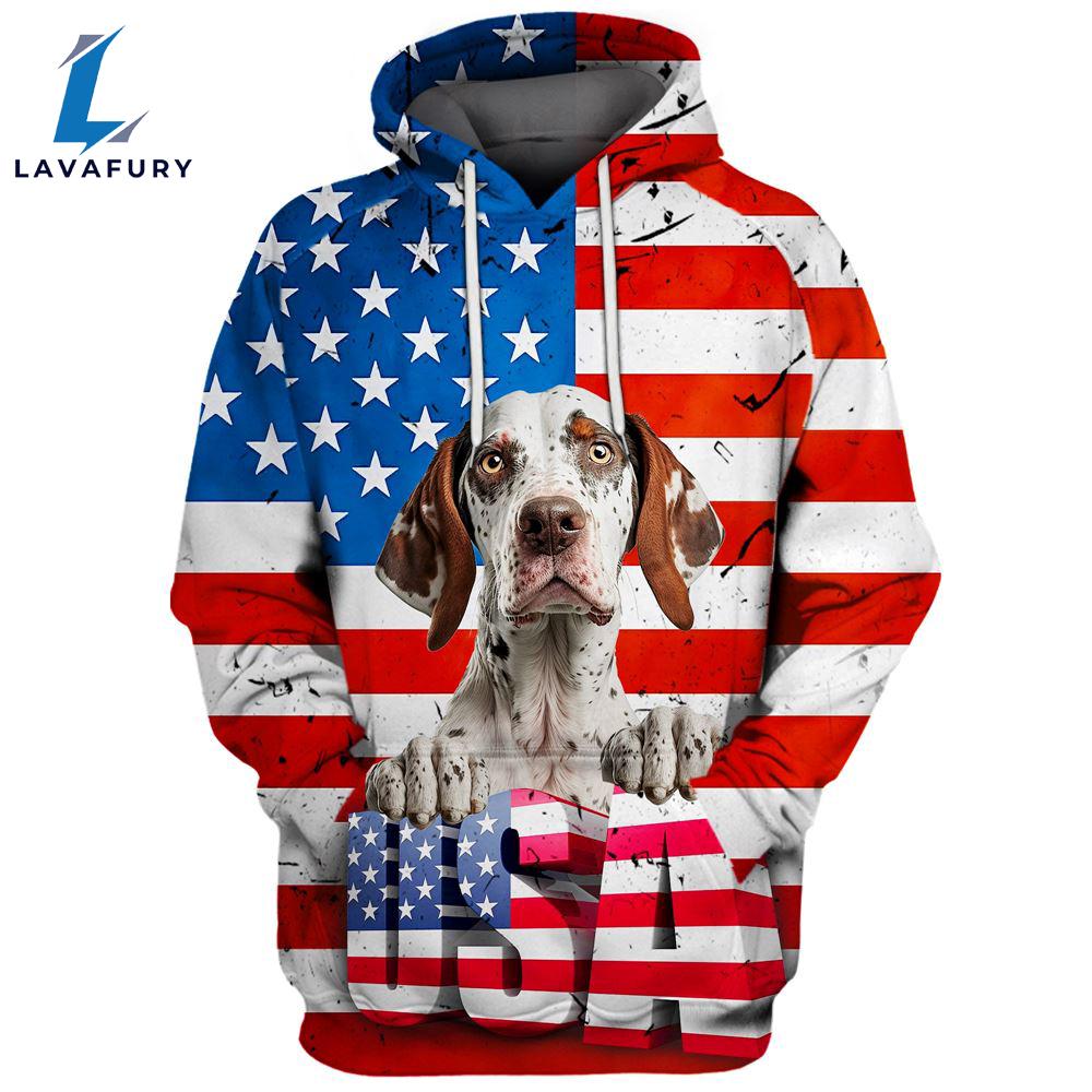 Product details: Portuguese Pointer Dog 3D Face Graphic Premium America Flag Hoodie For Lover Dogs